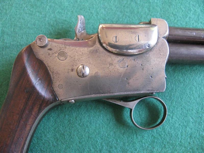 es una pistola con cargador tubular por debajo del cañón, al estilo de las winchester.