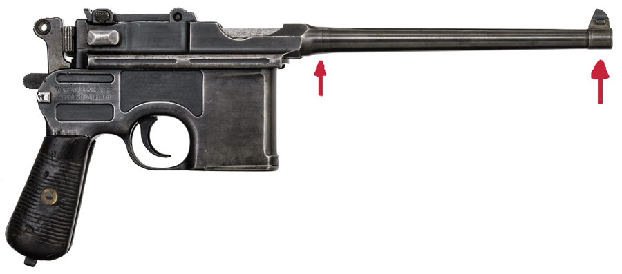 Edito: Estos alargamientos de tubo, tanto en C-96 como en P 08, son la excepción que confirma la regla. La tendencia era a reducir a unas medidas prácticas. Este Bolo tiene a mi modo de ver poco sentido.