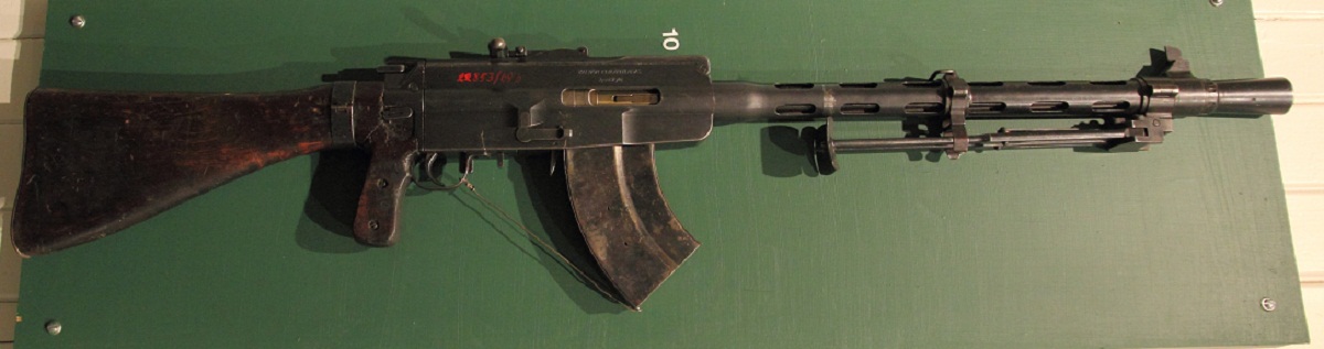 Este subfusil es un Suomi 31 finlandés, excelente arma.