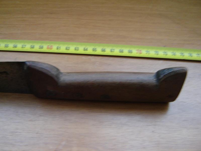 hola . me encantan los " hierros " solo tengo estos dos , pero tambien guardo clavos forjados y cualquier hierro que encuentro , este es mi cuchillo ( me encanta la forma de la empuñadura , en la hoja se lee 31besset ?? ) lo recojio mi hermano de un trastero junto con un monton de viejas herramientas de carpinteria , la dueña le dijo que se llevase todo , era de su difunto padre y ella nunca habia subido al trastero ( que poco amor a los trastos de su padre ) . y un machete de cocina que quiero trasformar en hacheta de caza , suerte!
