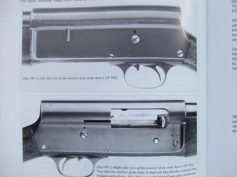 Los famosos contra tornillos de seguridad no estaban en las primeras unidades fabricadas así como el sistema de bloqueo del cargador para poder cambiar solo el cartucho de la recamara o como se denomina hoy en día cut off, también formaron parte de una sucesiva evolución que el propio John efectuó en 1909, otro punto importante es el sistema de seguro el cual es diseño de FN en estos primeros modelos y con el cual el propio no estará muy de acuerdo, John lo sustituirá, curiosamente todas estas modificaciones que aparecen en 1909 son en las Auto-5 de calibre 16 en primer lugar, ese mismo año se hacen extensivas a otros calibres, pero las primeras que lo llevaron fueron las del 16, pero no nos adelantemos demasiado, ya que estamos estudiando la época que transcurre entre 1903 y 1909, lo he mencionado porque John ya tenía en mente estas ideas en 1903 pero no las pudo poner en práctica hasta 1909, cuando ya era jefe de diseño de FN, ello es y ha sido fuente de confusión por parte de los aficionados incluido yo mismo, ya que creía equivocadamente que estas modificaciones se habían efectuado después del primer pedido de 10.000 unidades para USA.