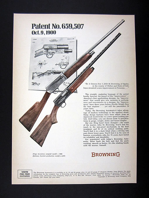 1900: El prototipo de Auto-5 es patentada parcialmente el 9 de Octubre.