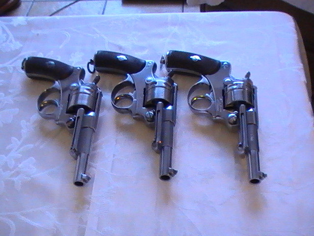 3 autres revolvers Chamelot Delvigne 1873 Terre modifié pour tirer la 11 mm 90 marine, en parfait états.