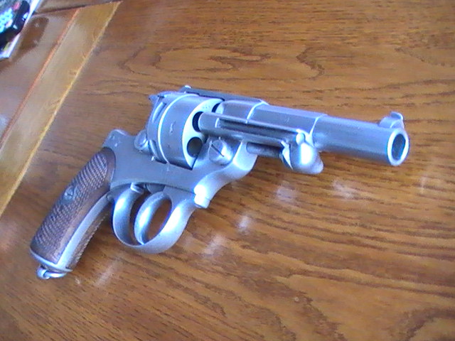Revolver Galand il est plus connu sous le nom de "Revolver tue-tue" en 8 mm tue-tue, il a été aussi chambré en 32 s&w et en 7,65 mm Browning. il faut déposer le barillet pour le charger.