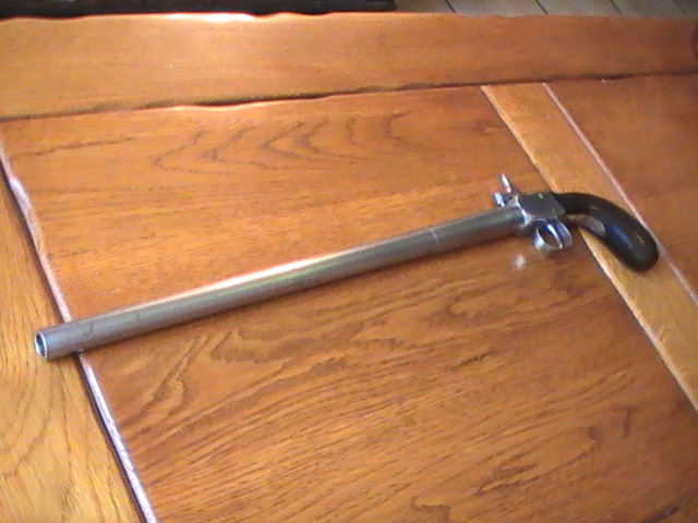 Très joli petit Derringer, très simple comme fermeture en 9 mm Flobert, balle ou grenaille.