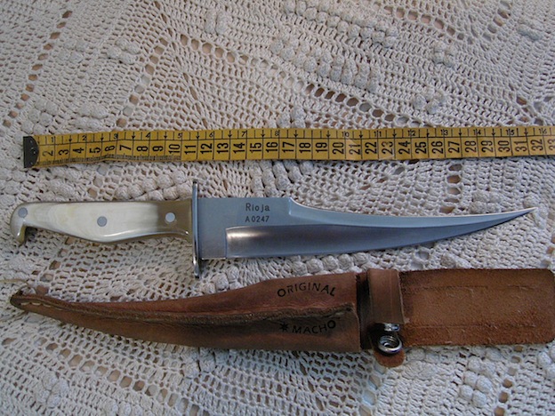 Cucuillo hecho de herrero, usado en la cocina, en el sacrificio, desollado y despiezado de animales de corral, rebaño o caza; y le llmaron el "MACHO" cuando lo levaban tras la faja.