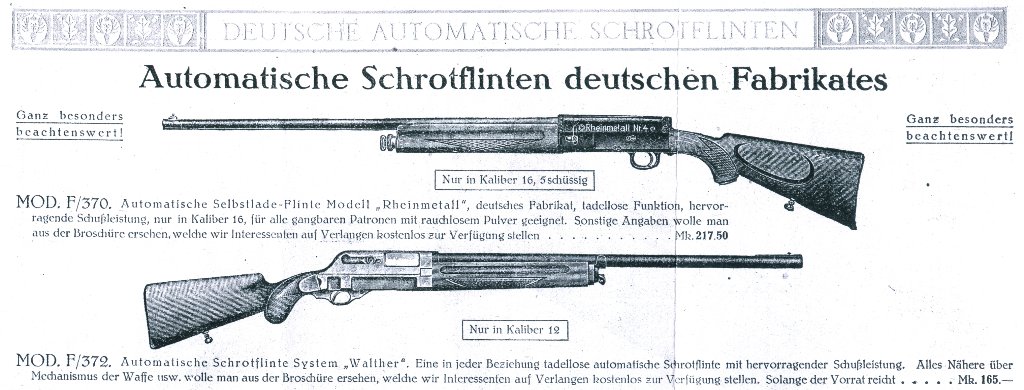 Su falta de conocimiento por parte de la mayoría de aficionados es lógica ya que la mayoría de estas armas no pasaron nunca de ser como mucho prototipos, de hecho solo se llego a producir un modelo y de una manera inconexa tanto por parte del productor como de los diferentes centros que la produjeron sea parcial o totalmente, me refiero a la escopeta semiautomática Walther.