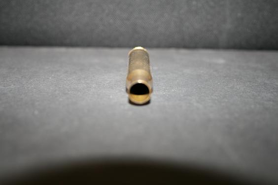 Como vamos a pasar a recalibrar, conviene limpiar bien el interior del cuello para que nada se interponga entre la oliva y la vaina. Hay que recordar cómo funciona un die. La vaina, y sobre todo el cuello, están expansionados y amoldados a la recámara. Es relación macho-hembra.