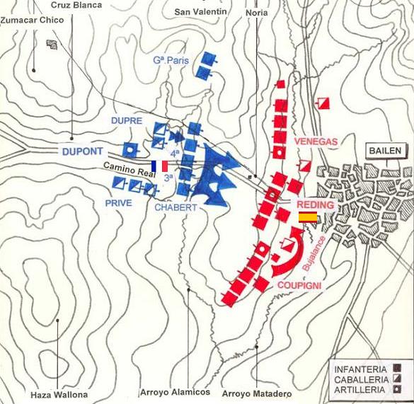 Otro terreno que marco la diferencia fué Bailen en la 1ª derrota del 1º ejercito del mundo, hasta entonces invicto al mando del general invicto Dupont, colaboraron: el terreno, "la caló" de Julio (el calor en correcto español) y las "aguaoras" ( mujeres de la zona que llevaban el agua a sus maridos y primos mientras estos les daban para el pelo a los gabachos, que para su desgracia no tenían "aguoras".