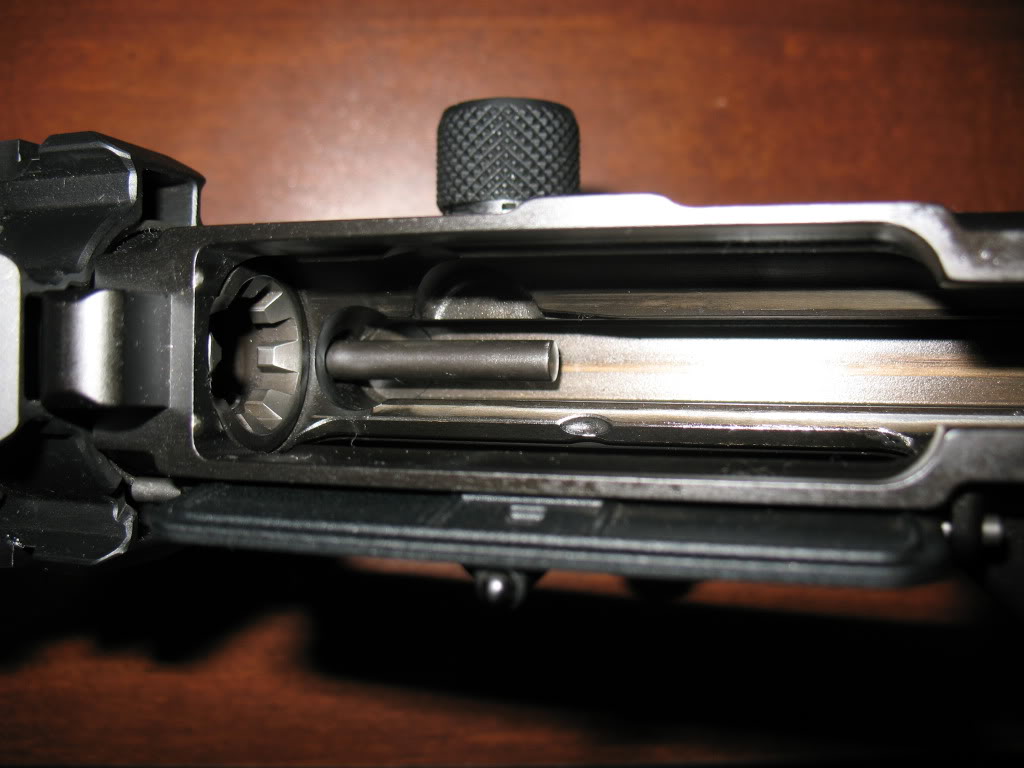 El cierre del MR lleva un rebaje en el lado izquierdo. La recamara del MR tiene esa forma delante del Barrel Extension para evitar que se puedan usar cierres de otros ARs.