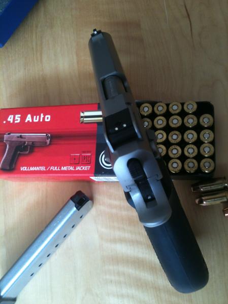 Pues ahí van algunas fotillos de mi "robusta" 4506-1 con nuevo look (cachas Hogue)y nuevo cargador pro-mag.