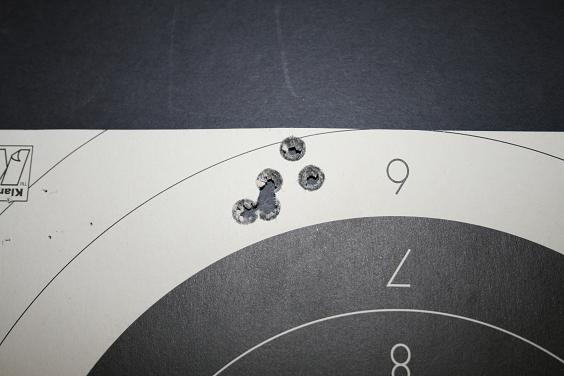 Las agrupaciones fueron de 2,3cm para la ks de 127 y la cdp de 127. Con la Ks de 108 se me fueron a 3,7cm, pero tuve la sensación de moverme justo en el tercer disparo. La mejor agrupación la conseguí con la TM de 93 grains que bajó a los 1,6cm (lo malo es que me varía mucho con respecto a la CDP para poder solapar ambas en rececho y esperas sin necesidad de variar el ajuste del visor).