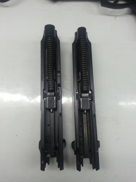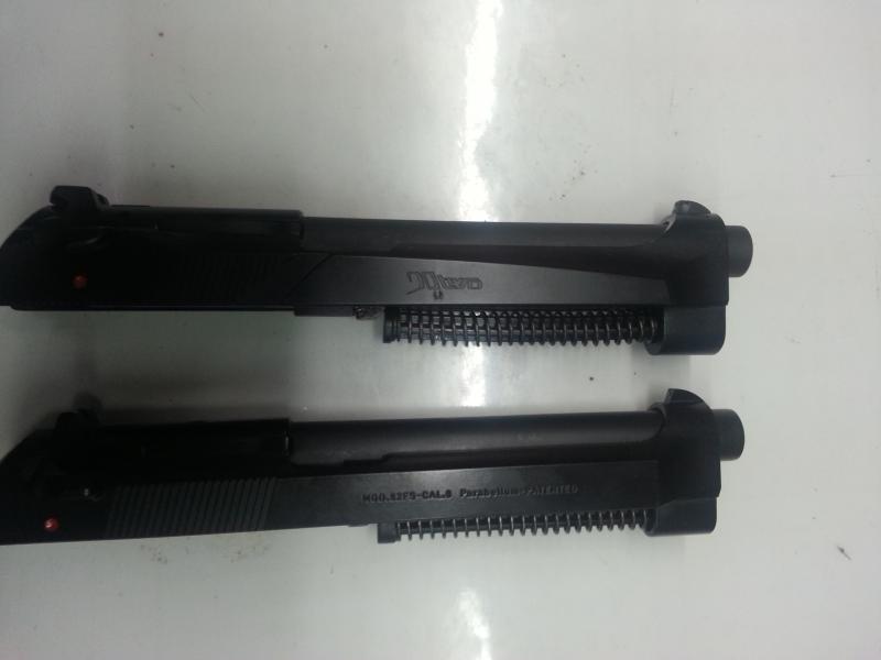 Aprovechando que un compañero tenía una 92 con kit del 22 comprobe que tanto kit como los cargadores del 9 són compatibles funcionado correctamente en la two. La Corredera pesa unos cinco gramos más en la two y el armazón unos quince gramos menos que la 92Fs.