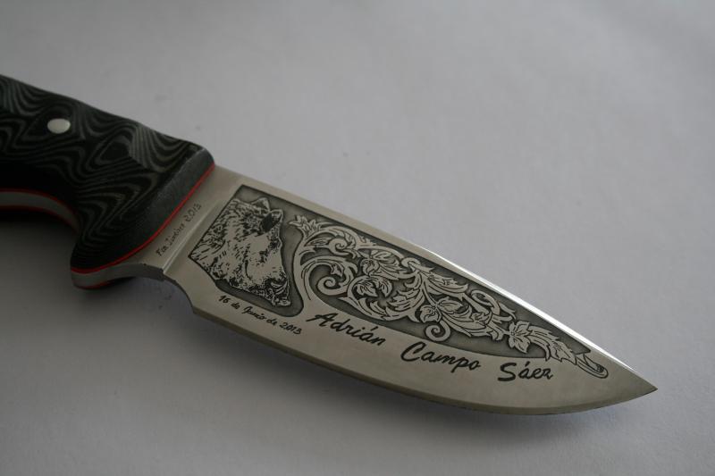 Decir tambien a los demas compañeros del foro el porque del grabado. La fecha que pones es cuando mate mi primer jabali. Fue una noche de aguardo y este cuchillo grabado es algo asi como "conmemorativo" de mi primera sangre.