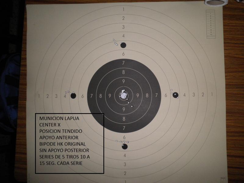 os adjunto otra foto, la prueba es a 50 mts. con un visor Hensoldt fero z24 , 4 aumentos, con una mira de 30 o 40 aumentos la precisión aumenta sensiblemente