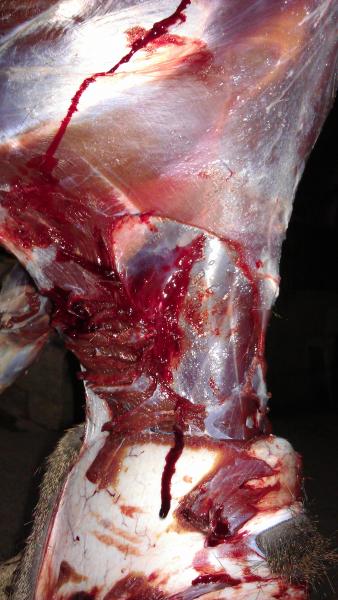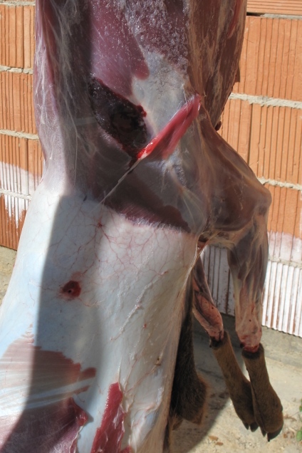Un proyectil de 17 grains, con un diametro tan pequeño y proyectiles "altamente expansivos" pensados para hacer su trabajo en "varmint" sobre pequeñas aves y minusculos mamiferos, no es adecuado para animales de 20 kg y menos aun mayores.