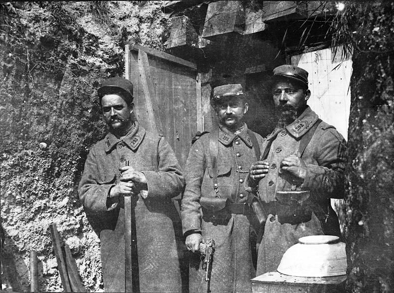 Un soldado francés durante la Gran Guerra con otra Luger en su mano.