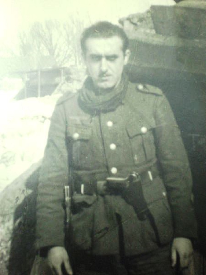 Este Divisionario lleva una TT-30 o una TT-33 en esa funda, seguramente capturada a un enemigo soviético.