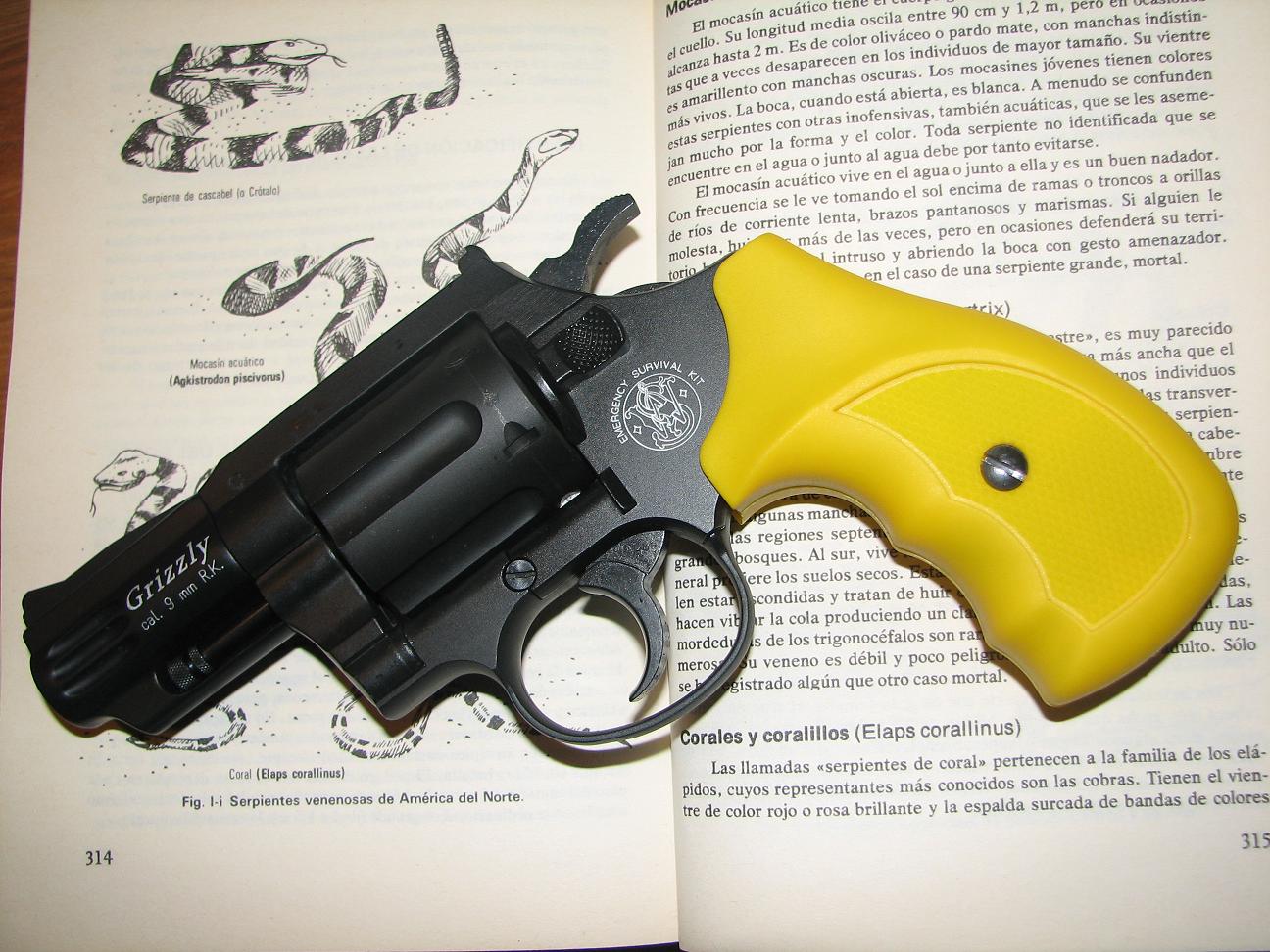 Hola compañero, te paso un par de fotos del grizzly con sus cachas amarillas viene con estas cachas ya que el revolver forma parte de un S&W survival kit, espero que te guste.
