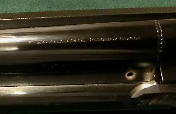 Os pongo unas fotos a continuación a ver que os parece y para ayudar a la identificación. Comentar tambien que está ajustadísima, parece que lleve la grasa original y que no haya disparado ni un solo tiro. Está impecable y tiene un plomeo espectacular entre los 20 y 40 m. (La he probado en el plafón del campo de tiro). Por cierto lleva chokes fijos de 3*** abajo y 1* que vienen grabados en los cañones. Y en la palanca de apertura lleva las letras AS,que no se que significan ?