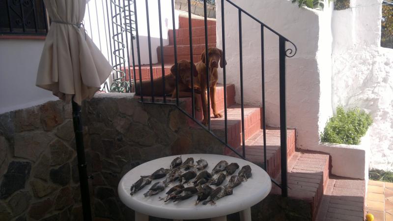 bueno pues aquí pongo la percha que hice ayer junto con mi hermano y nuestros inseparables compañeros caninos, en la foto faltan 2 conejos y una paloma ,que a mi hermano se le olvidó sacar de su macuto para la foto de rigor jejjejeje....un saludo!!
