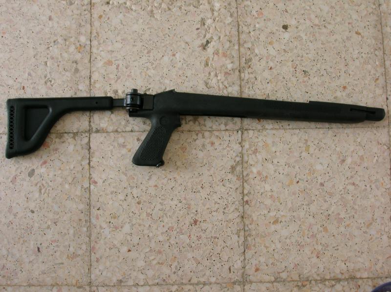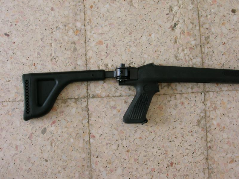 culata plegable choate, ligeramente modificada en el interior para admitir la montura Scout, no afecta ni se ve, incluye la pieza de montaje posterior, no el "pin" que retiene la banda anterior.
