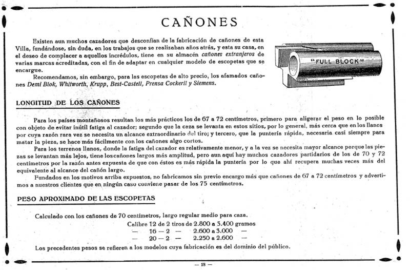 Léase la coletilla: Recomendamos, sin embargo, para las escopetas de alto precio, los afamados cañones Demi Blok, Whitworth, Krupp, Best-Castell, Prensa Cockeril y Siemens. dejando claro cuales eran los mejores cañones en su opinión, a pesar de disponer de los monobloc.