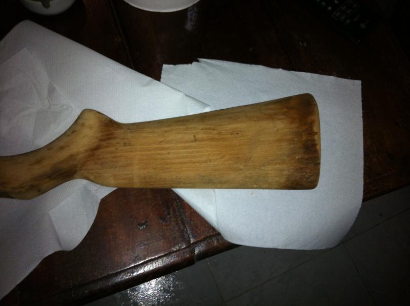 Si amigo Marmota2 le he puesto un tratamiento anticarcoma que consiste en un producto líquido que se introduce en los agujerotos, al ser spray la he empapado en producto y la he envuelto con plástico film 24 horas, esta noche vuelvo a repetir la operación y la dejo 3 semanas con film otra vez, después de este tratamiento le meteré un endurecedor de madera ya que la culata está un poco blanda la madera, otra técnica para esto es ir pasándola por encima de ascuas, con cuidado para no quemarla, técnica que utilizaban los indios para endurecer flechas.