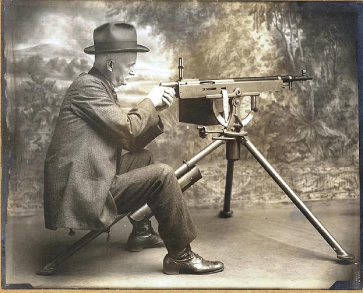John Moses Browning y su ametralladora Colt Browning 1895 ( Potato Digger )