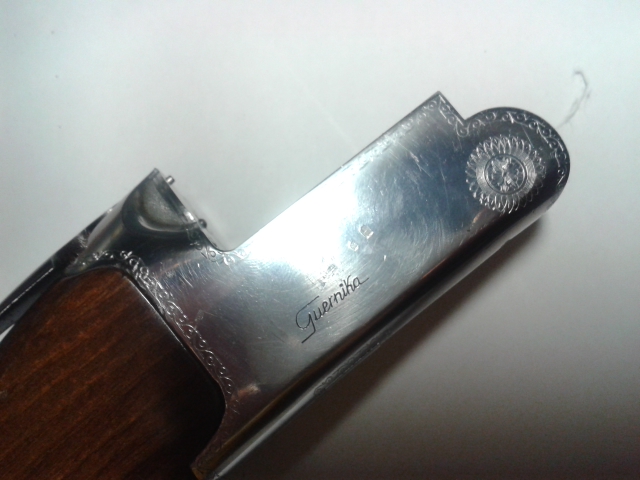 Yo le he dicho que era una escopeta bastante singular. Aramberri guernika con los aros olimpicos y cañon con doble banda ventilada que salio de rebote nueva y no se encuentran que en los 34 años que tenia no tenia ni una sola raya