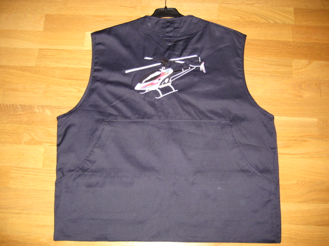 Vendo chaleco de piloto de helicóptero de radio control, azul con helicóptero bordado en espalda, totalmente 02