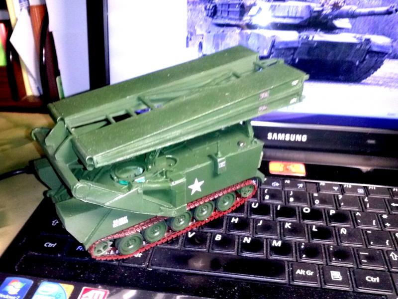 Bueno, aquí esta mi M113A1 AVLB. Como veréis, falta enguarrarlo algo, no mucho pues me gustan pistados como vehículos base, pero algo de mugre le pondre. Falta pintar la cadena, oxidarlo un poco, etc, etc., pero esto es lo que hay.