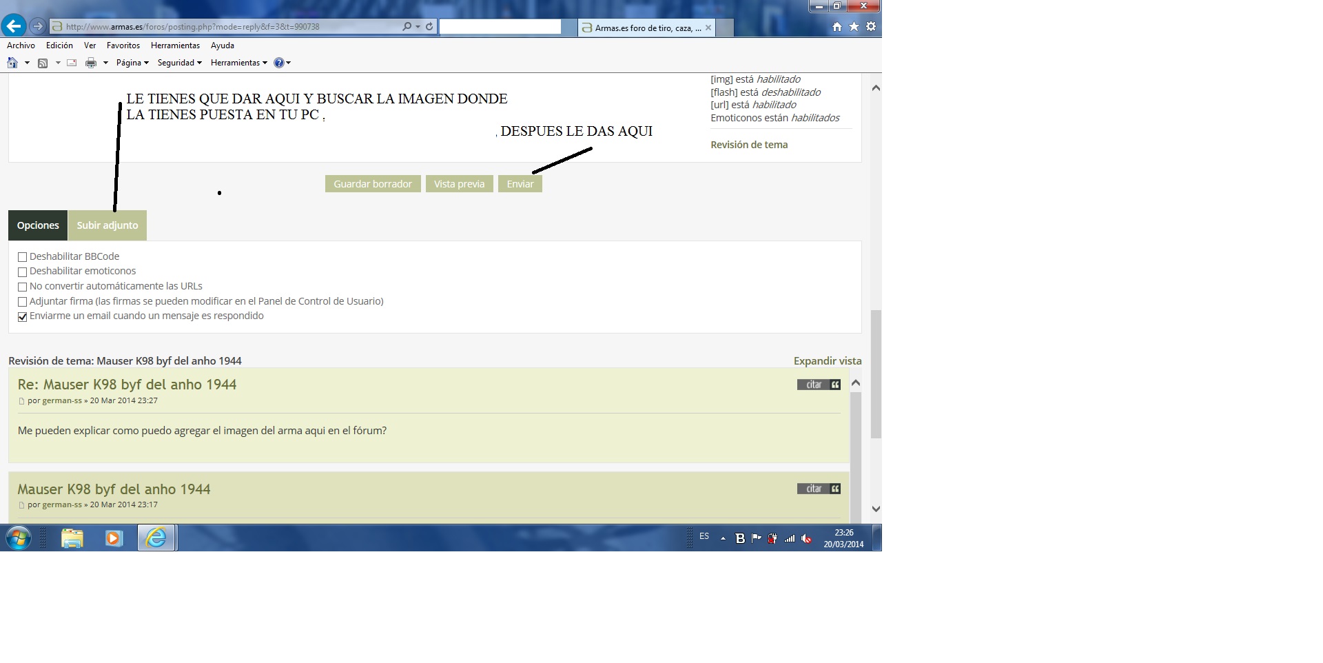 Me pueden explicar como puedo agregar el imagen del arma aqui en el fórum?