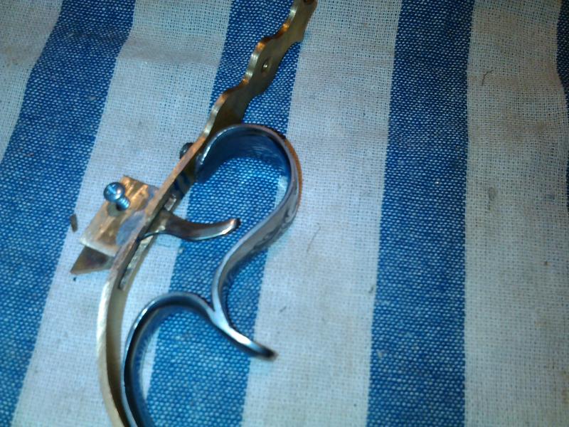 y he podido hacer el gatillo.Partiendo de la lamina de latón he cortado un par de trozos para los laterales y otro para el gatillo.