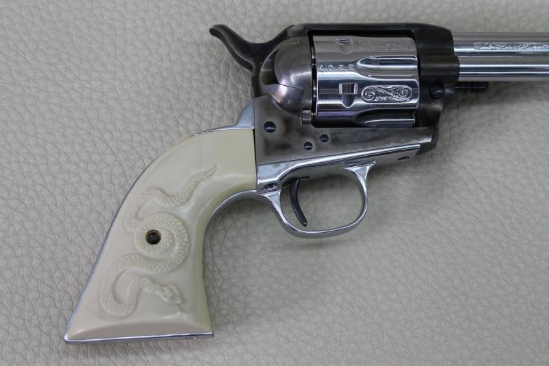 He aquí otra vista del mismo (aclaro que el revólver está descargado, y la foto está sacada con una cámara automática; no hay nadie frente a la boca de fuego)