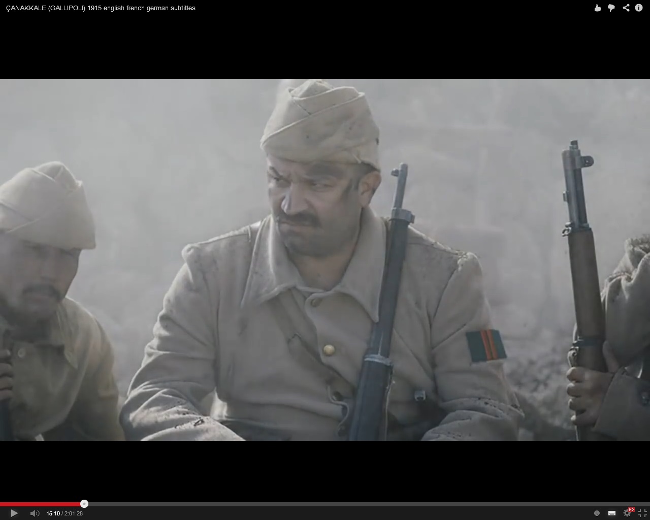 una peli turca de 2012, sobre la campaña de Gallipoli en 1915, desde el punto de vista de los turcos. Algunos payos usan máuser largo (bien) y otros usan M-1 GARAND (fatal). No la he visto entera. Pueden salir otros fallos garrafales, visto lo visto.