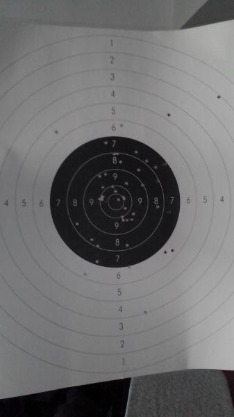 He visto un par de gatillazos que se han reflejado en la diana y hoy por fin he comenzado a adivinar los tiros buenos y los que se desviaban.... Hacia donde se iban acertando en mas de un 70% de ellos, pero no la distancia a la que quedaban del centro.