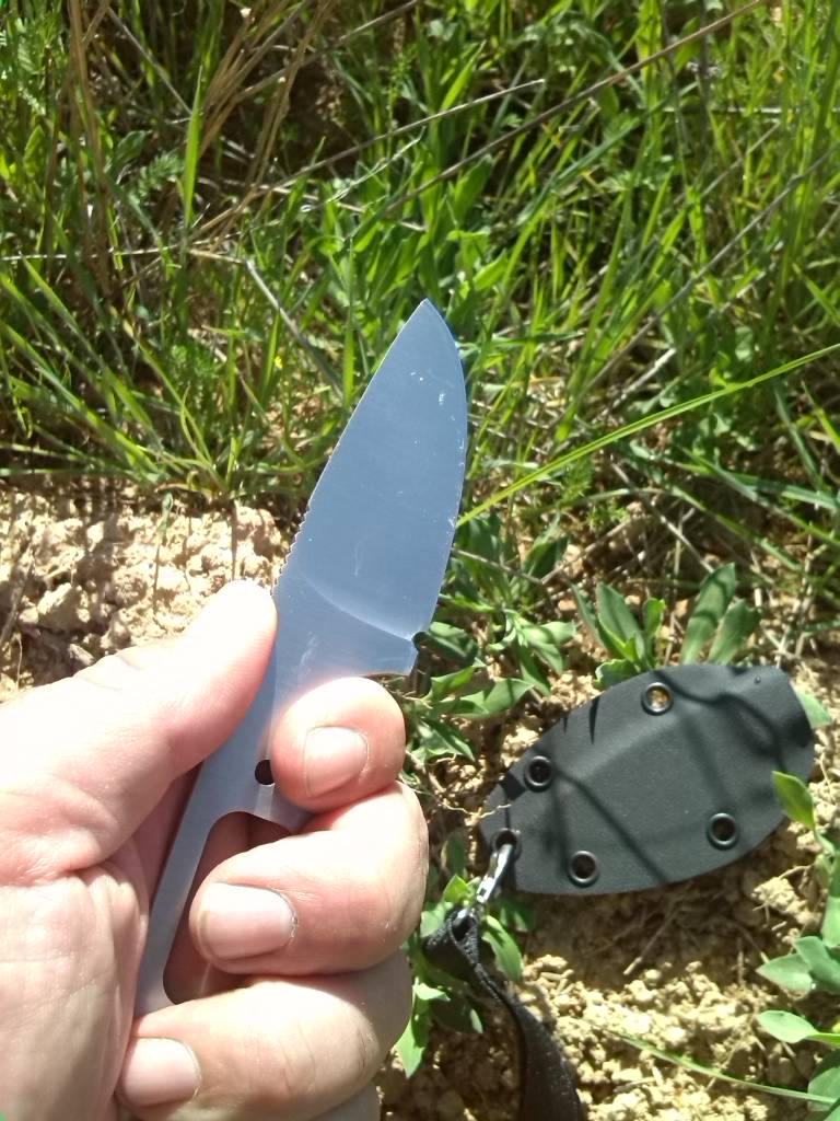 Este es un cuchillo tipo “neck” de JV CDA, anteriormente CDS, fabricado por Juan Martínez de Albacete en acero Mova58 y en este caso está completamente desnudo. Viene con una funda de Kydex y un cinta para llevarlo colgado del cuello si así apetece.