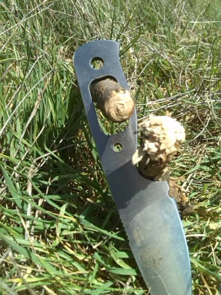 El afilado fino y la realización de muescas, en este caso en una rama de jara, no es problema alguno.