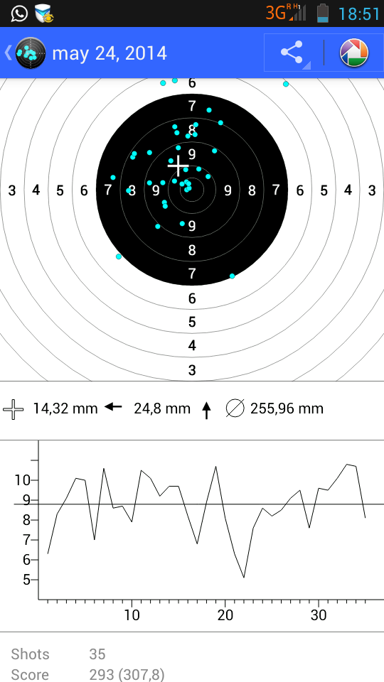 Tienes que meter cada disparo de uno en uno y te los agrupa en series de 10 y te da datos curiosos, os pongo alguna captura mas.