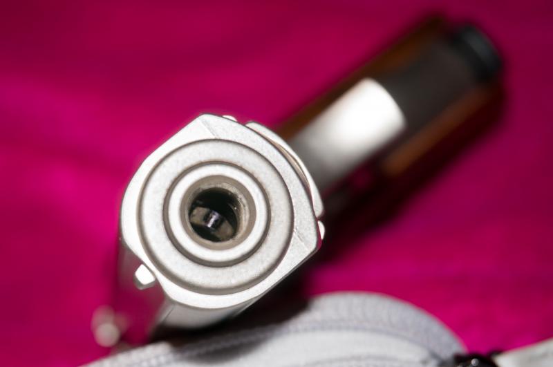 Muy buen acabado en niquel mate (no brillante). En las fotos se aprecia, no es un niquel blanco totalmente, es algo mas calido. Un acabado perfecto, como todas las detonadoras Rohm de la epoca.
