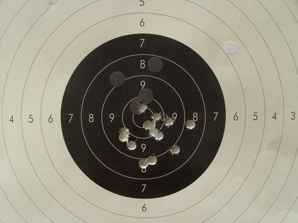 Puede que sea aprensión pero los disparos me sorprenden en sitios que no los espero y algunos muerden ligeramente desequilibrados cosa que no hacen los otros que sacan el cartón limpio como si fuera un sacabocados.