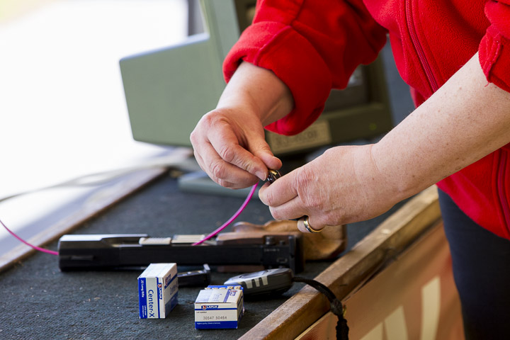 Lo cierto es que las banderas de seguridad se continuan usando. Esta imagen es de la primera Copa del Mundo ISSF de este año 2014, celebrada recientemente en Fort Benning, Georgia (USA) y en la que se ve la pistola PARDINI de la tiradora suiza Heidi DIETHELM GERBER, Medalla de Oro en Pistola Damas.