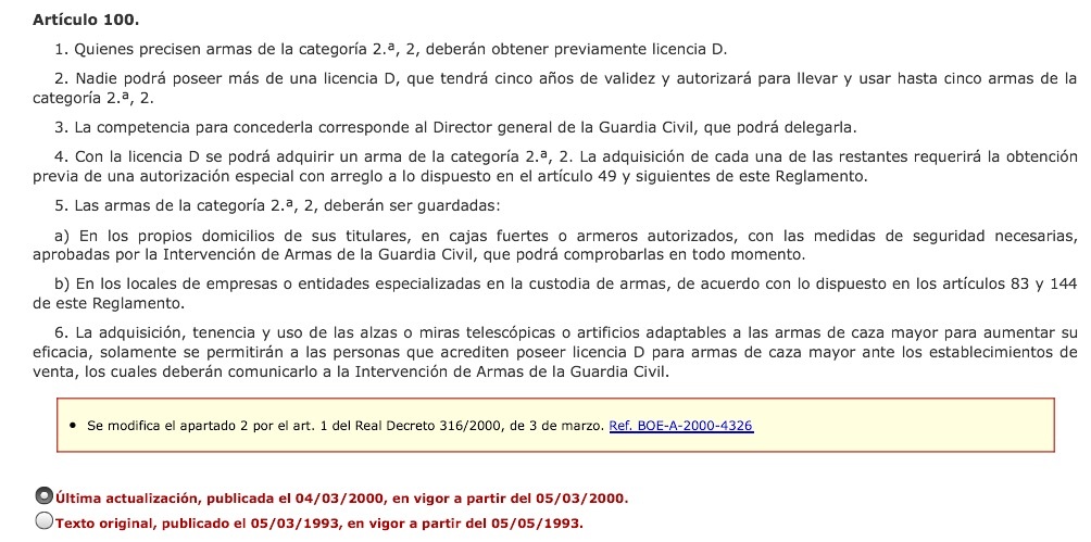 Y todos aquellos que son mas papistas que el papa y que dicen que esta bien porque son las normas,os recuerdo que para tener un simple visor de los que se instalan en las carabinas hace falta tener licencia de armas de fuego tipo D, solo que como no tiene pies ni cabeza pues no lo controlan,pero a ver cuantos de los que escriben aquí tienen o han tenido un visor sin tener esa licencia.
