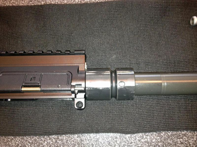 Curiosamente HK no ha puesto rampas en su upper, aunque la barrel extensión tiene unas bastante alagadas, seguramente con el objeto de prevenir desalineamientos en la instalación y dado que está no es un arma de combate, si no un fusil de precisión.
