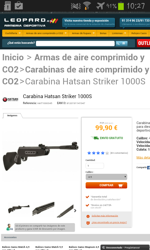 yo mismo he visto gamos deltas por ese preciosergio22 escribió:se que si lo comparas con eso se que no hay color pero si para lateo va bien...panabayas escribió:hola .cuanto es bien de precio ? , el compañero , " pepelu " , a vendido una , hace bien poco a precio de saldo , y por lo menos en sus manos y con un chinobushnell iba de cine !!! . pues que si es para pasar buenos ratos tirando a latas y demas ... maravillosa !!! , si la quieres comparar con una pcp de 400 o mas euros ..... pues no ! , es lo que es ! y vale lo que pagas por ella . suerte !!!
