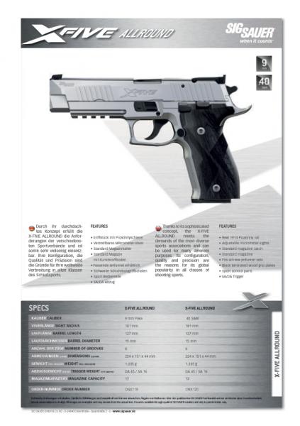 Disponible como X-SIX, X-FIVE, X-SHORT en 9mm y .40 (SAO)