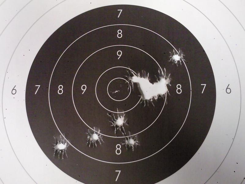 ............ pero luego a pesar de las buenas sensaciones no acabo de agrupar, o lo hago donde no debo. Toquiteo un poco alza y túnel y no acabo de centrar, pero observo que los pistones salen hechos añicos aunque el martillo no se revoca.............. pero por si las moscas cambio la chimenea. Luego en casa he visto que ya tiene 0,9 mm de canal.