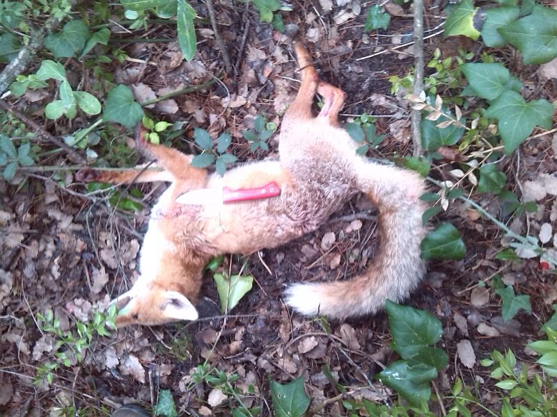 El zorro esta cazado en batida/gancho.
