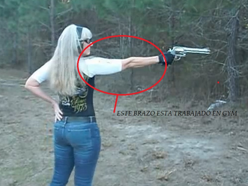 Por cierto, me parece que la rubia hace trampas, y lleva un guante Past, de los que amortiguan el retroceso .